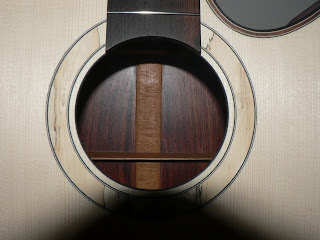 Final sanding for the MD is done. MD is ready for the finishing work, Capatian top looks pretty nice, and King wood back and sides are also pretty good. King wood is a tricky material for the finishing work, because this material has quite strong reddish stain that easily contaminate brighter color materials such as top and Black-white border. I have been using Epoxy filler, and the Epoxy filler is able to prevent the contamination issue. However, when I apply Epoxy filler, I need an extreme care. It seems like the King wood has fairly small pores, and one Epoxy filling session might be able to fill the pores completely. I will have a final sanding session for the Nylon model next week, and then I will start finishing work for both models.